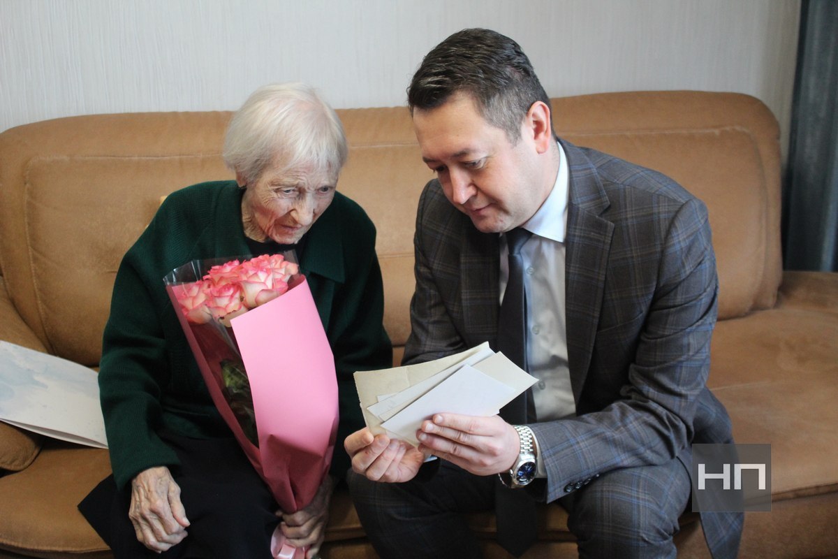 20 января исполнилось сто лет жительнице Новомосковска Ульяне Григорьевне Насоновой. Поздравить человека, который старше города, в гости приехал глава администрации Новомосковска Руслан Бутов. Он поздравил Ульяну Григорьевну с днем рождения, вручил ей цветы и подарки и остался на чаепитие.