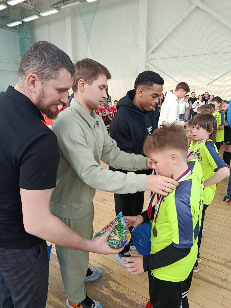 Именно этот звездный квартет и вручил заслуженные награды победителям и призерам соревнований - кубки и медали, а каждому участнику – сладкий подарок, а дети с удовольствием фотографировались с именитыми спортсменами, сохранив яркие эмоции и воспоминания.