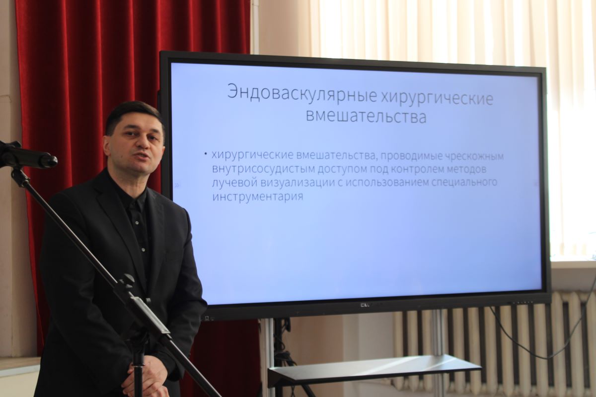 Лицеисты 10-х, 11-го и 6-го классов узнали много о профессии малоинвазивного хирурга, кем является Титал Сиабандович. Поясним, малоинвазивный, эндоваскулярный хирург — врач, который специализируется на лечении сосудов щадящими методами, проводит операции через точечные проколы тканей или физиологические отверстия пациента. То есть это минимально травмирующие операции да еще и при местном наркозе. Под руководством Титала Брояна отделение освоило 5 новых направлений в области рентгеноэндоваскулярной хирургии, а также увеличило количество хирургических вмешательств до 2000 в год.