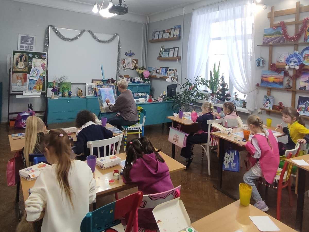Ребята из младшей группы «Мир творчества» ДДЮТ на одном из первых в новом году занятий изучали удивительные свойства акварели с помощью техники «по-мокрому».