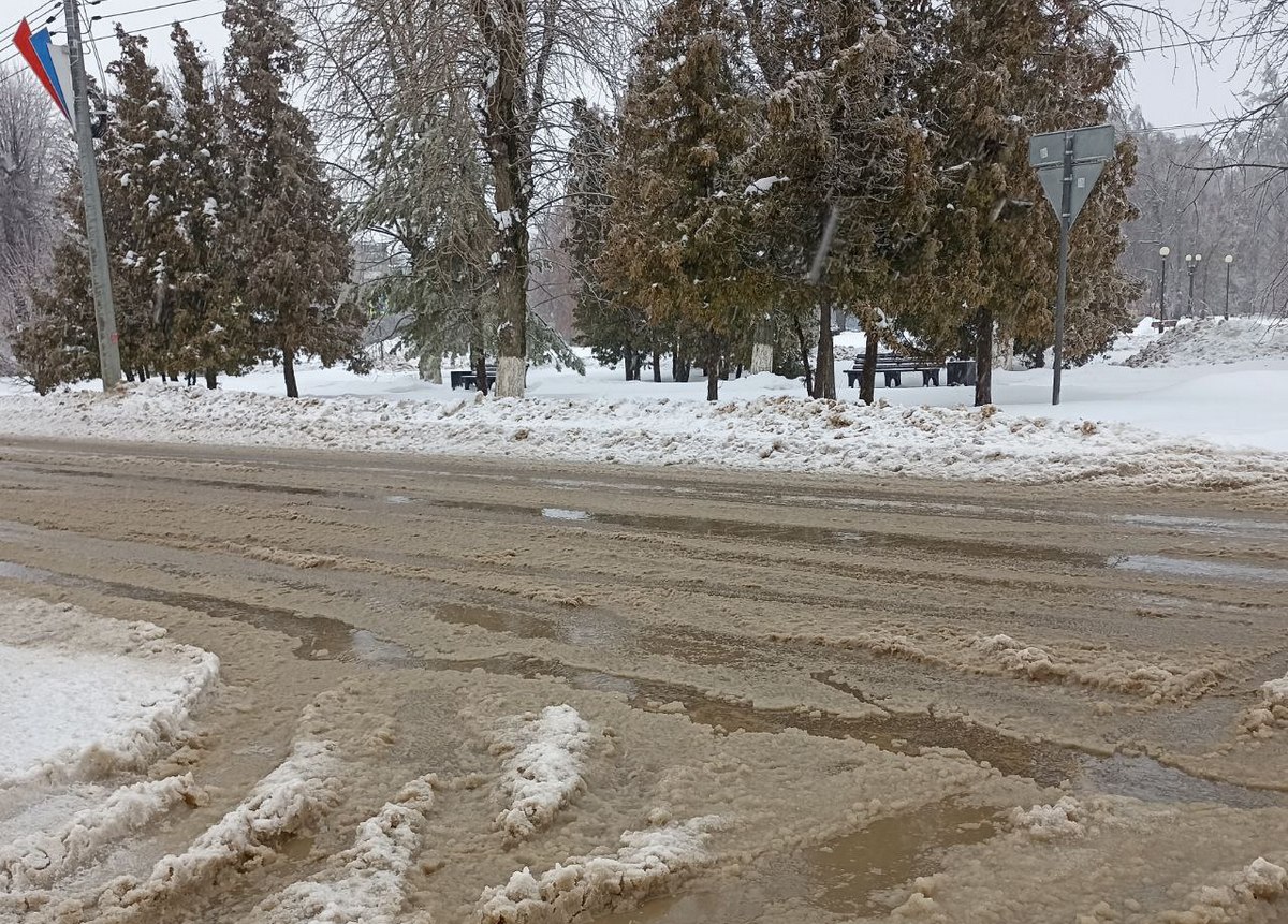 В Новомосковске сохраняется пасмурная погода и ледяной дождь.