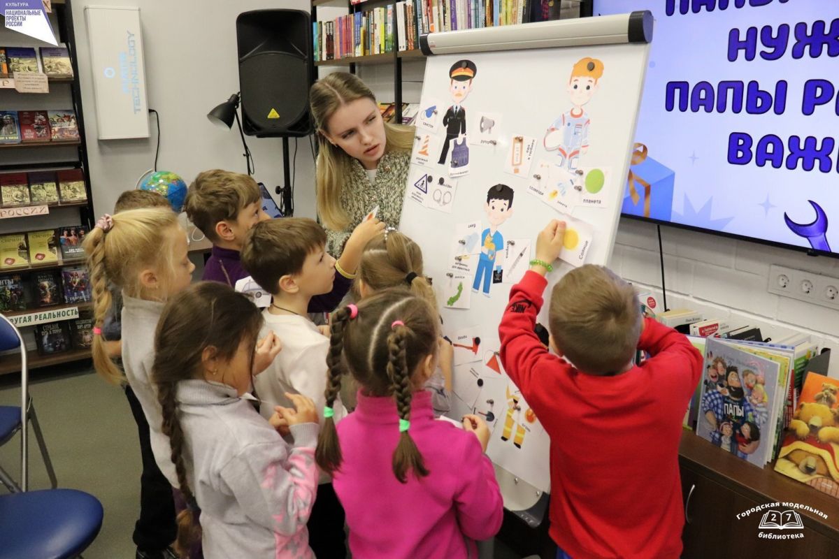 В городской модельной библиотеке № 27 для дошколят из центра образования № 14 состоялась познавательно-развлекательная программа «Папы разные нужны, папы разные важны», посвящённая Дню Отца.