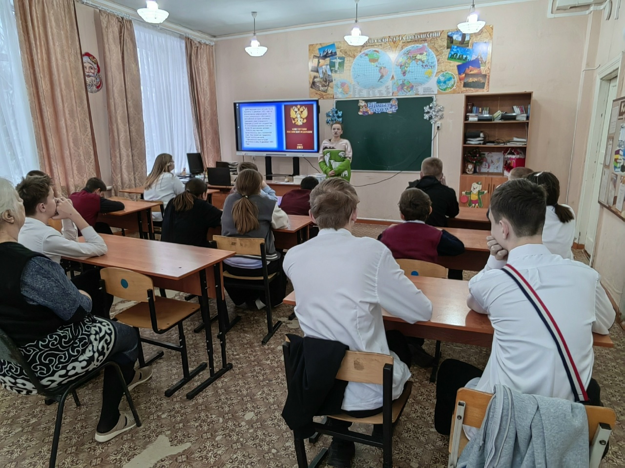 Для школьников Новомосковской школы с ОВЗ прошёл познавательный час ко Дню Конституции.
