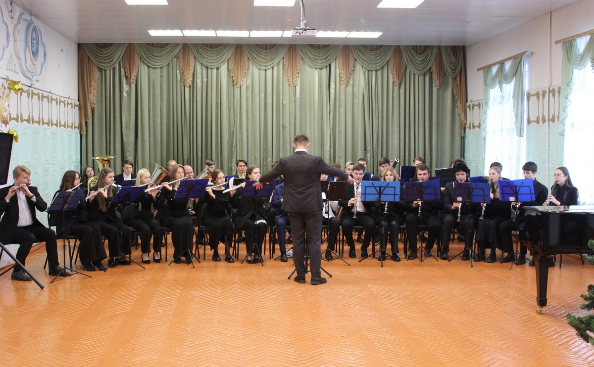 Духовой оркестр Новомосковского музыкального коллежда выступил в Детской школе искусств