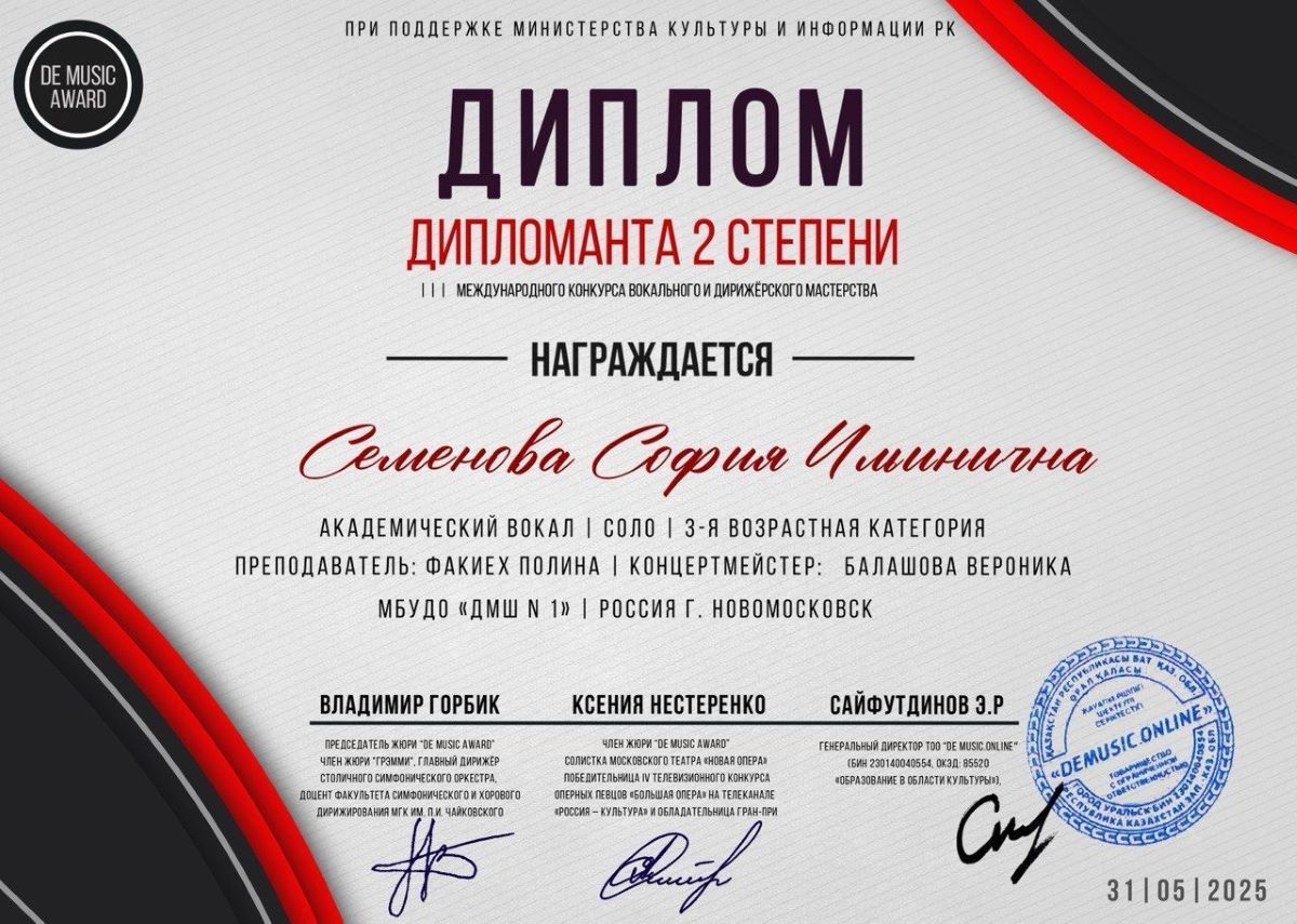 Ученики класса преподавателя Полины Факиех (концертмейстеры Н. Краюшкина, В. Балашова) стали участниками и победителями международных конкурсов.
