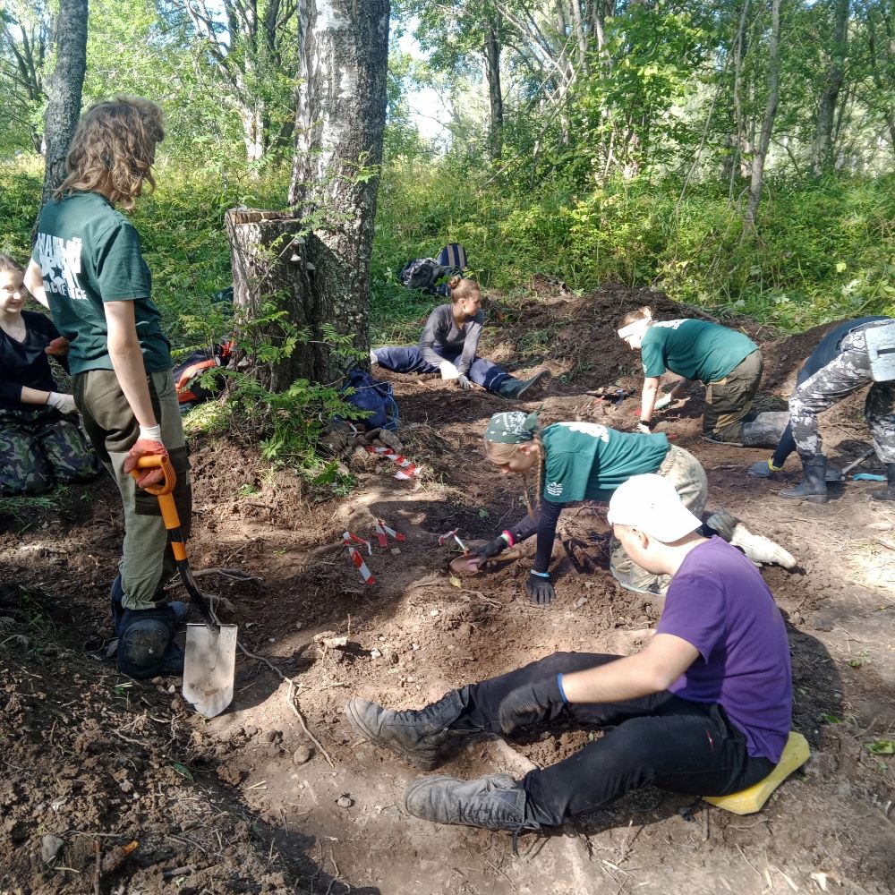 Мы не раз встречались и с ребятами из этого отряда, и с их командиром, рассказывали об участии в поисковой работе. Заметим, что состав «Д.О.Н.а» все время меняется: одни лицеисты оканчивают учебу, другие приходят, но некоторые, став взрослыми, продолжают участвовать в его работе. Так было и в нынешней августовской экспедиции: в числе 15 человек - учащиеся, два педагога - помимо командира, учитель истории Анна Валентинова - и в прошлом выпускницы лицея Алена Кирюшина и Татьяна Ситкевич.