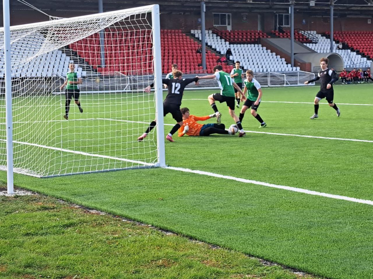 В 15.30 молодые игроки команды «Химик-2009» принимали на своем поле команду ДЮСШ г. Богородицк. Матч с первых минут начался при игровом и территориальном преимуществе воспитанников тренеров Александра Шувалова и Владислава Рыбина. Счет в этой встрече на 9-й минуте открыли наши игроки после красивого розыгрыша. Гол в нижний угол ворот гостей забил Кирилл Кузнецов. Второй гол в ворота юношей Богородицка, после отличного сейва вратаря гостей, на 26-й минуте встречи забил Илья Шаталин. Счет стал 2:0 в пользу «Химика-2009». Но и до этого гола у наших юношей было еще немало отличных моментов для взятия ворот гостей, однако самоотверженно играли защитники и вратарь ДЮСШ г. Богородицк. Однако гостям с каждой минутой стало труднее обороняться при такой игре в атаке «Химика», когда использовалась вся ширина футбольного поля. Проходы по флангам, игра в короткий пас в штрафной площадке гостей и в течение девяти минут мяч еще трижды побывал в сетке ворот футболистов Богородицка. В нашей команде отличились Максим Трегубов и дважды Иван Кузьмин. С результатом 5:0 завершился первый тайм встречи.