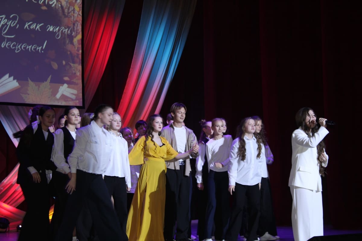 Творческим подарком всем присутствующим стал праздничный концерт, подготовленный для учителей их коллегами - педагогами школ, детских садов и учреждений дополнительного образования.