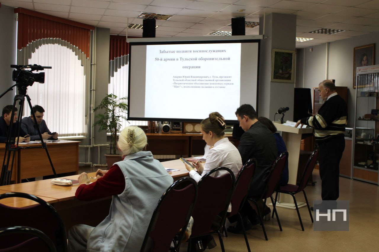 Юрий Апарин подготовил доклад на тему «Забытые подвиги военнослужащих 50-й армии в Тульской оборонительной операции». Он привел интересные и малоизвестные факты о тяжелых боях в родном крае.