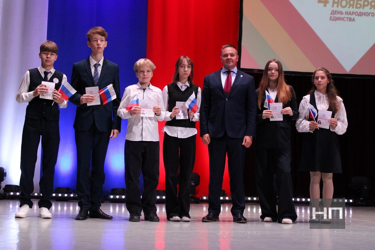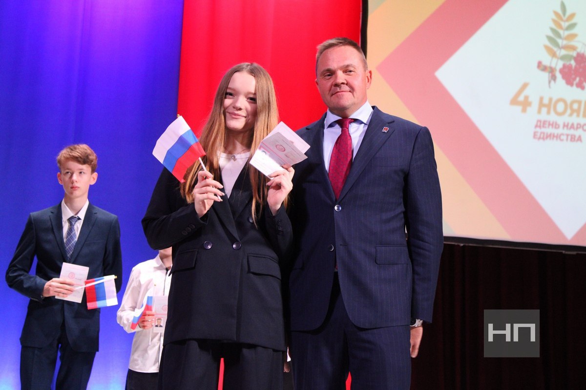 Алексей Платонов вручил юным новомосковцам, достигшим 14 лет, их первые паспорта. Руслан Бутов отметил Благодарственными письмами социальных партнеров города и волонтеров, занимающихся оказанием гуманитарной помощи нашим бойцам в зоне СВО.