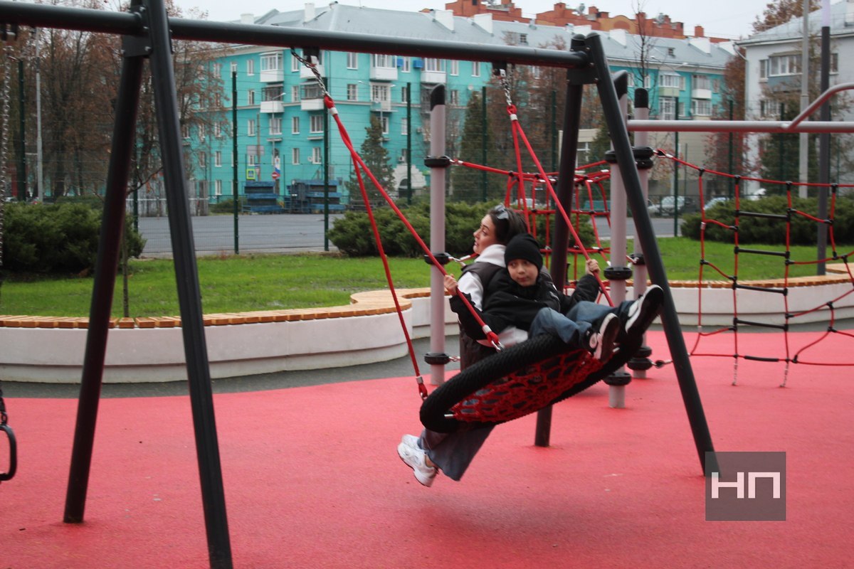 В рамках проекта реконструкции, получившего название «Звездный», созданы комфортные зоны отдыха и досуга для новомосковцев всех возрастов. На территории сквера обустроены памп-трек, игровые и спортивные площадки, качели, модульные сиденья с зарядками для гаджетов, «звездный круг».