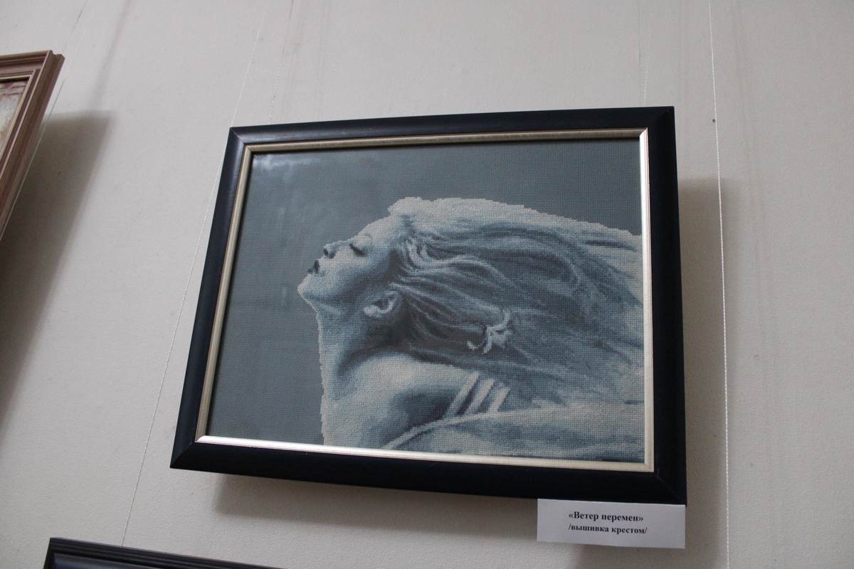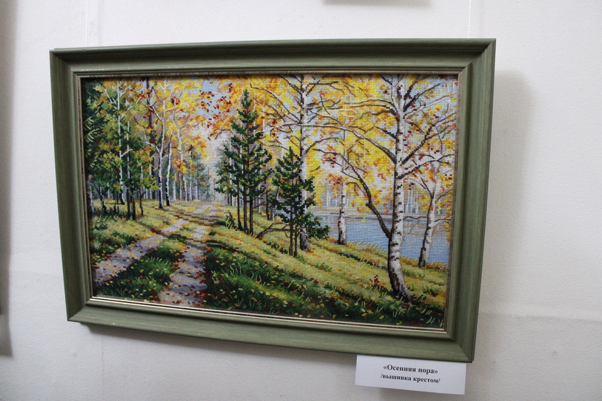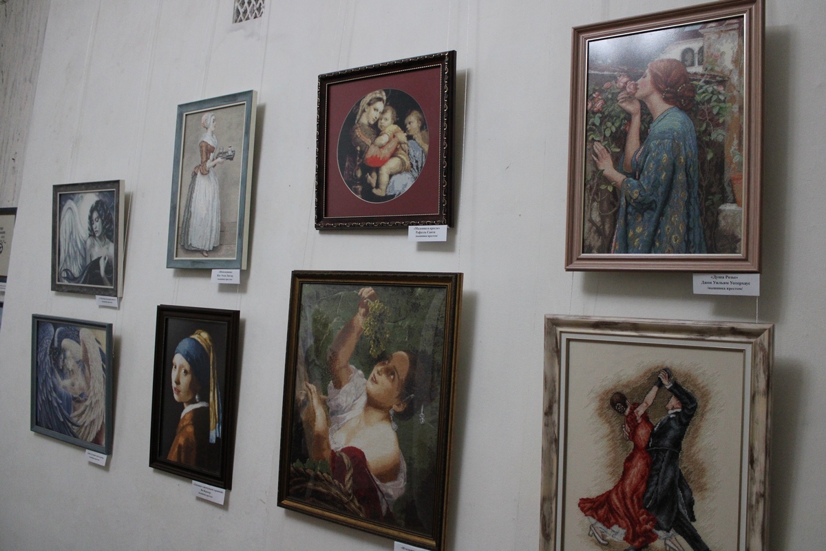 В археологическом музее Новомосковска открылась персональная выставка Ольги Бережковой, на которой автор представила картины, вышитые крестом.
