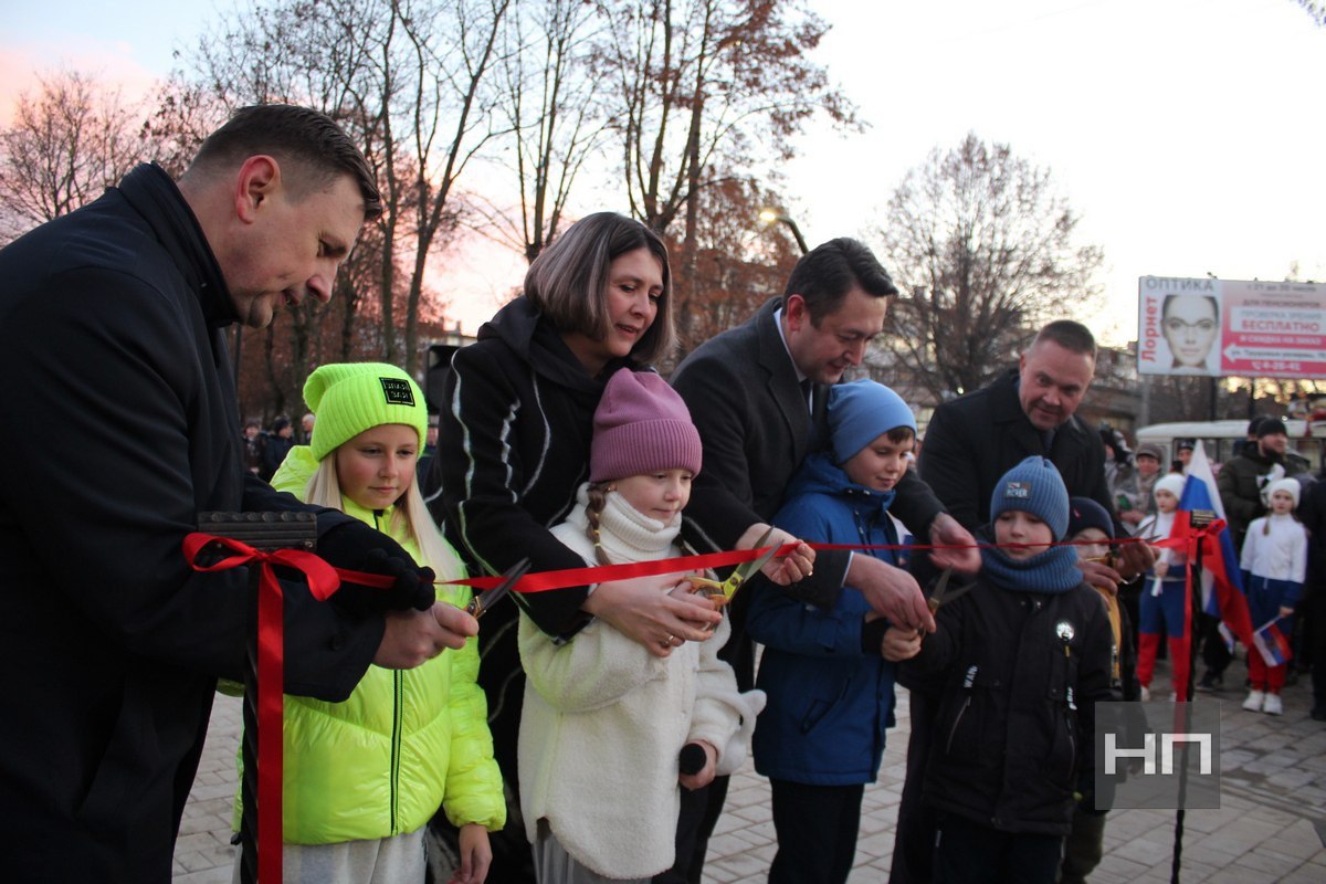 После наступил второй торжественный момент: гости, вместе с маленькими новомосковцами перерезали символическую красную ленточку.