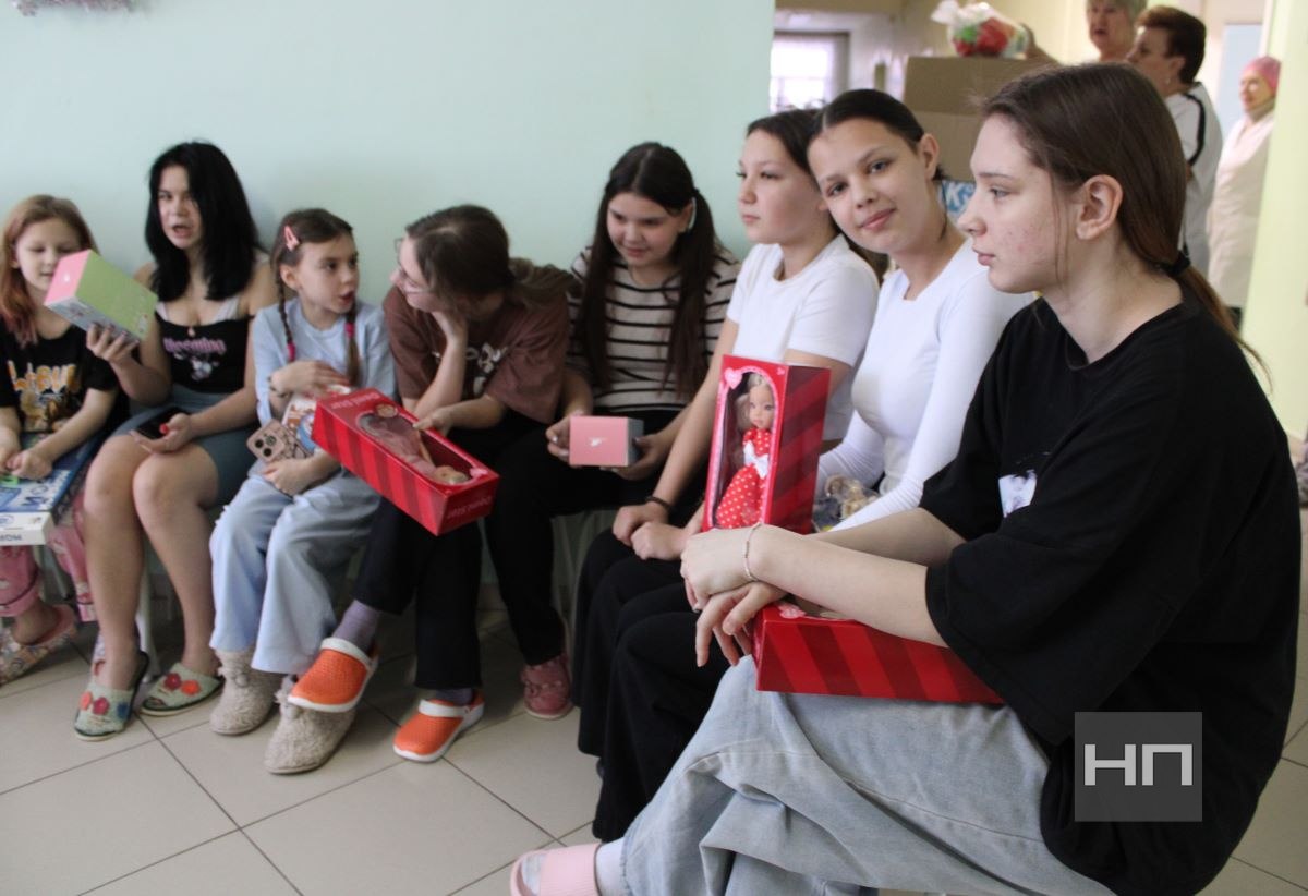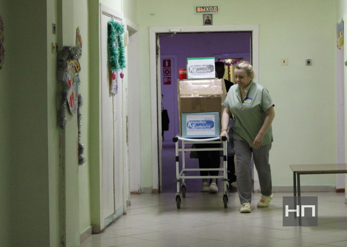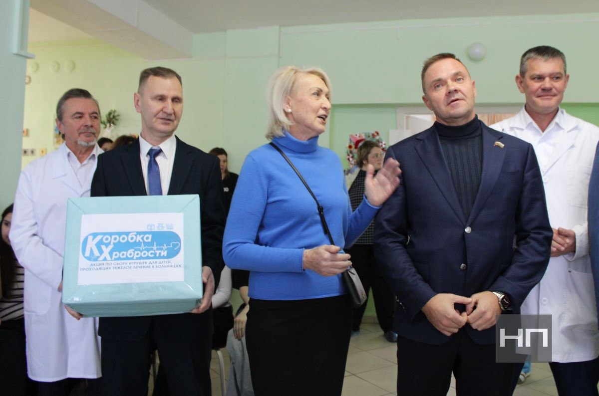 «Коробку храбрости» гости торжественно передали сначала врио главного врача НГКБ Вячеславу Голубенко, тот, в свою очередь, - своему заместителю по детству Владимиру Недбайло. И уже у елочки детям, прокричавшим звонкое «спасибо!», раздали подарки из открытой коробки. Настроение у ребятишек при этом точно повысилось.