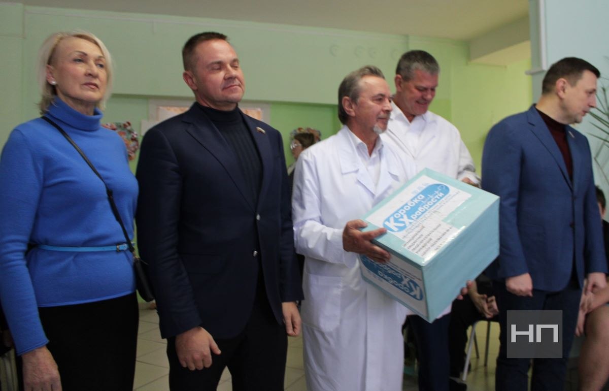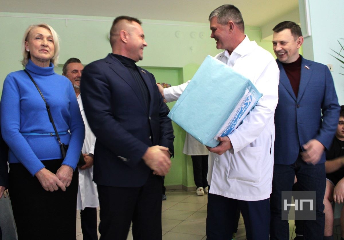 16 декабря в Детскую больницу Новомосковска приехали взрослые гости: заместитель председателя Тульской областной думы Александр Рем, глава муниципального образования Алексей Платонов, депутаты городского Собрания Надежда Андрианова и Виталий Лавров.