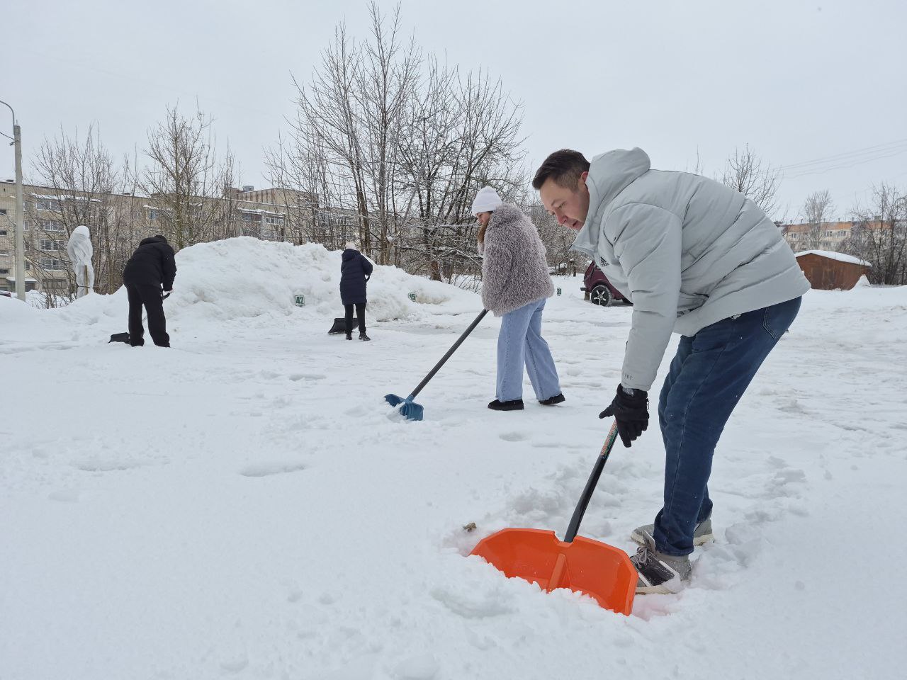 Сегодня жители вновь проявили инициативу, объединившись для помощи коммунальным службам в расчистке территории после сильного снегопада.
