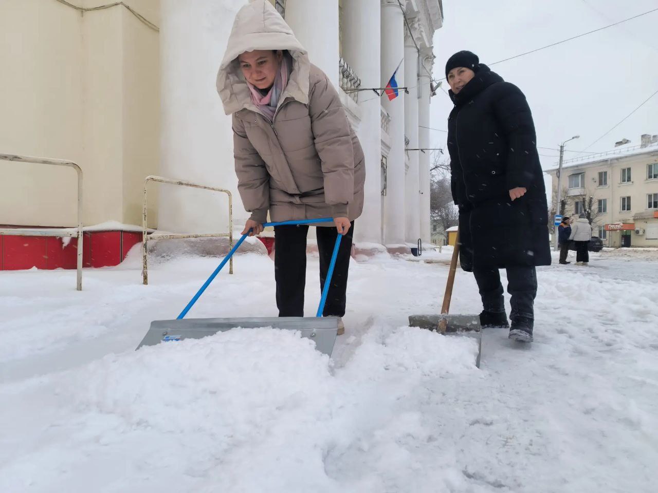 Новомосковцы, в числе которых были люди разных возрастов и профессий, откликнулись на призыв помочь коммунальщикам и убрать снег в общественных и знаковых местах, возле учреждений и во дворах.
